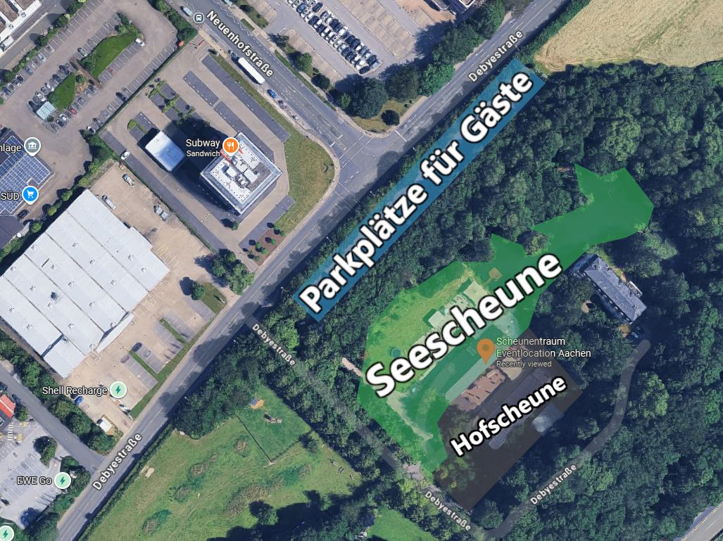 Der Scheunentraum liegt in Aachen-Brandt und ist von der Straße aus quasi nicht zu sehen. Die Zufahrt erfolgt von der Autobahn (A44) über die Debyestraße.